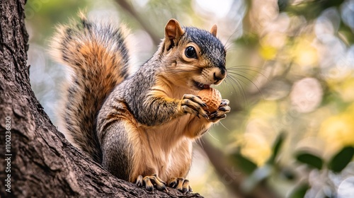 © Todd's Studio, Fototapeta premium a cut squirrel is eating a nut, background is forest