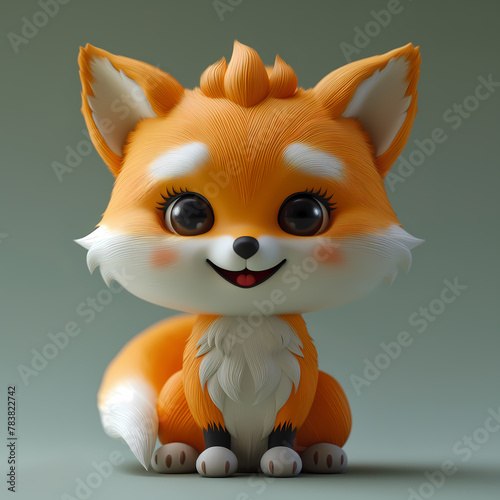 © enesdigital, Obraz premium A cute and happy baby fox 3d illustration