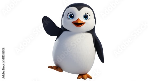 Fototapeta premium A cute and happy cartoon penguin waving with a friendly smile, perfect for...