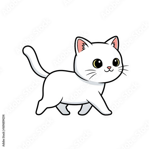 © Diclonius, Obraz premium A cute and playful cat walking, with its soft white fur contrasting against a clean background.