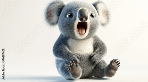 Fototapeta premium A cute, animated koala with a surprised expression, sitting and opening its...