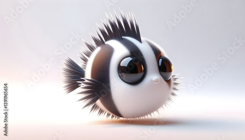 Naklejka premium A cute baby Banggai cardinalfish in 3D with black-white stripes and large...