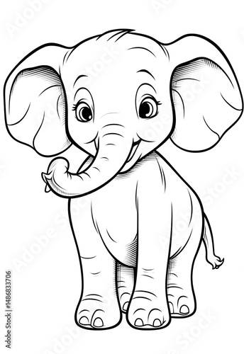 Fototapeta premium A cute baby elephant coloring page.