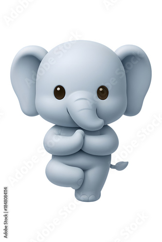© Fatema, Fototapeta premium A cute baby elephant performs a yoga tree pose with a peaceful expression on a transparent background isolated on transparent background
