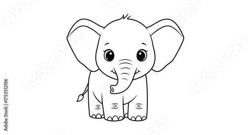 Naklejka premium A cute baby elephant ready to be colored in for fun and creativity.