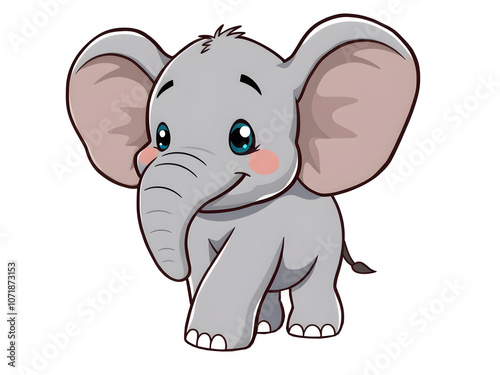 © Kanomaoi, Obraz premium A cute baby elephant with big ears and a friendly smile.