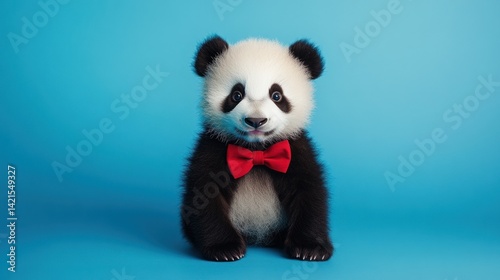 © Zubaedah, Fototapeta premium A cute baby panda wearing a red bow tie