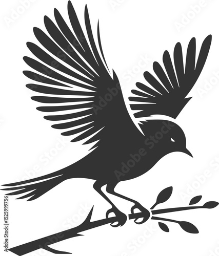 Fototapeta premium A cute bird on tree branch sitting vector silhouette