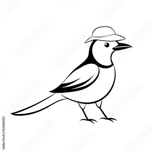 © Diclonius, Obraz premium a cute bird wearing a hat. this image captures a playful design with its simple yet charming aesthetic. vector illustration