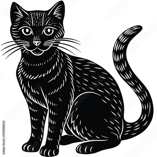 Fototapeta premium A cute black and white cat vector illustration depicts a feline pet silhouette