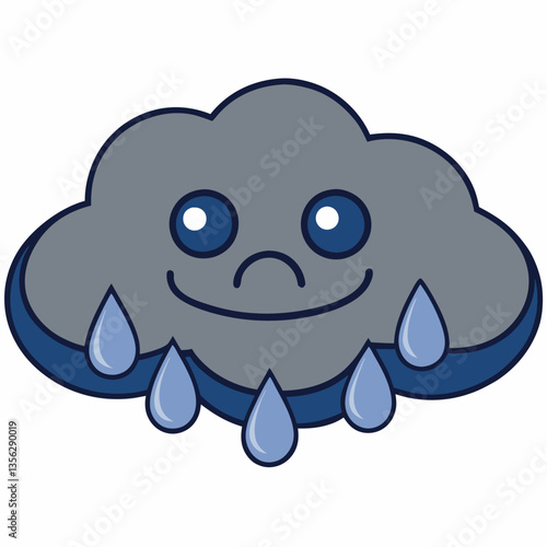 Obraz premium A cute blue cartoon elephant character with a happy smile and a tiny fish