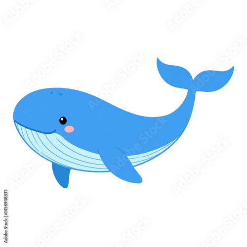 © TransPicHub, Obraz premium A cute blue cartoon whale with a smiling face and rosy cheeks.