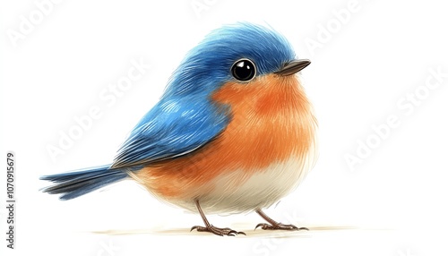 © weerayut, Fototapeta premium A cute bluebird with small wings, standing with a cheerful expression illustration isolate white background