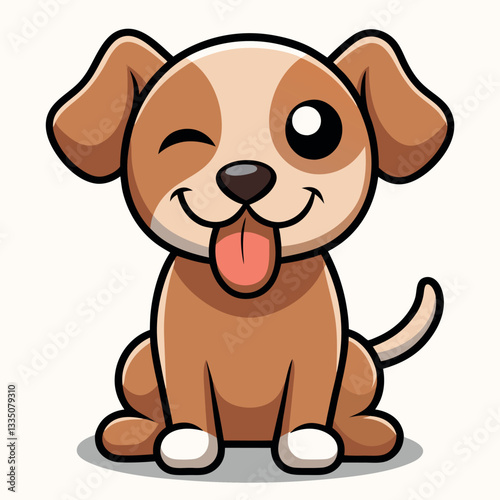 Obraz premium A cute brown cartoon puppy vector illustration shows a playful animal with a...