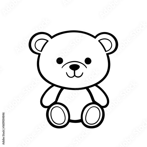 © ashrafkhan, Fototapeta premium A cute brown cartoon teddy bear with a red bow sits sweetly, a fun vector illustration perfect for childhood gifts