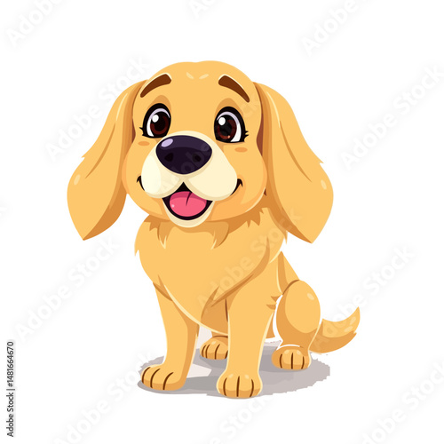 Fototapeta premium A cute brown dachshund puppy, a happy canine illustration, tail wagging, isolated vector art