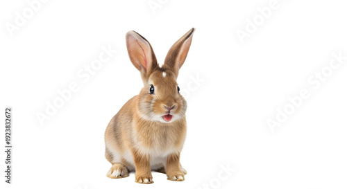 © Marin Studio, Fototapeta premium A cute brown rabbit sitting on transparent background with its mouth open