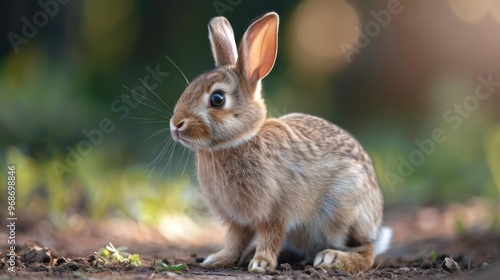 Fototapeta premium A cute bunny with big, alert ears and an inquisitive look is captured in the...