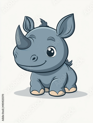 Naklejka premium A cute cartoon baby rhino with big eyes, two horns, and a friendly...