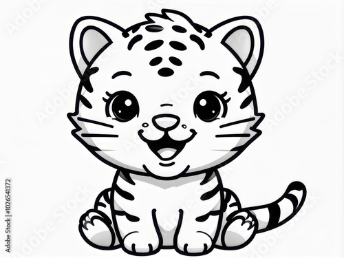 Fototapeta premium A cute cartoon baby tiger with a joyful expression, designed for children's...
