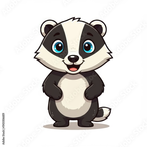 © Maxim Chaploutskiy , Fototapeta premium A cute cartoon badger stands upright with a cheerful expression.