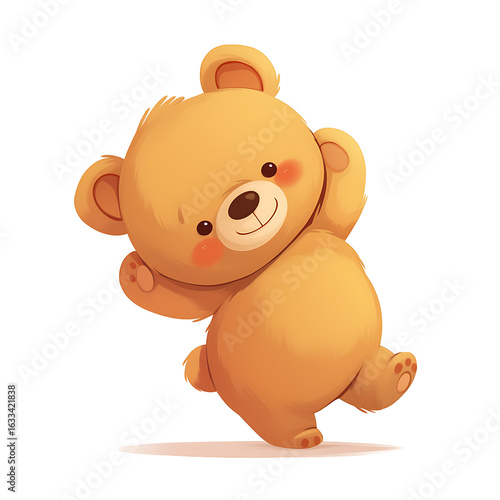 Obraz premium A cute cartoon bear illustrated in a playful and charming style. The bear has a soft, friendly expression, rounded shapes, and warm colors, perfect for children’s books, stickers, or T-shirt designs.