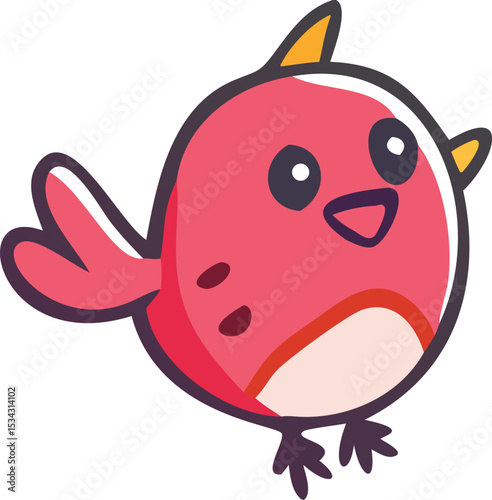 Fototapeta premium a cute cartoon bird, large expressive eyes, bright green feathers, red beak, simple line art, vibrant colors, whimsical, playful, kawaii style