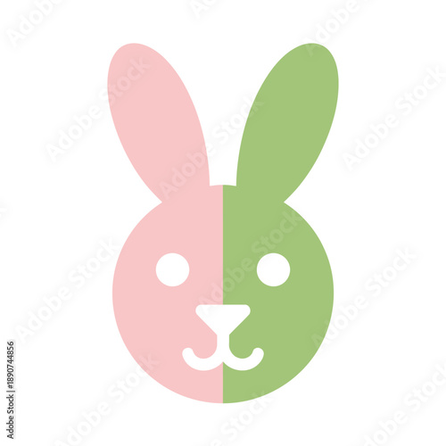 © Khalil Ahmad, Fototapeta premium A cute cartoon bunny face divided into pink and green halves on a white background