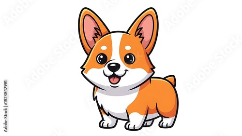© muawiya, Obraz premium A cute cartoon corgi dog with a happy expression on transparent background