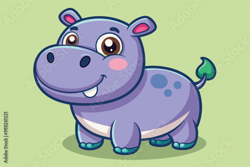 Fototapeta premium A cute cartoon hippo with big eyes and a friendly smile stands cheerfully...