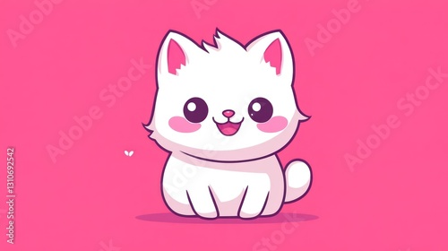 © 11faqihtanjung, Obraz premium A cute cartoon illustration depicting an adorable smiling kitten