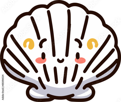Obraz premium A cute cartoon illustration of a smiling seashell with closed shell.
