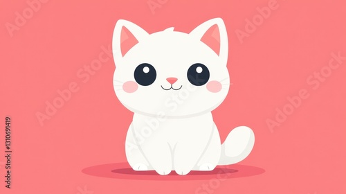 © 11faqihtanjung, Obraz premium A cute cartoon illustration showing a white kitten smiling sweetly