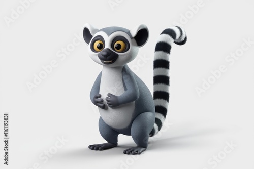 © Vibudhaart, Fototapeta premium A cute cartoon lemur with big eyes and a fluffy tail stands on a white background.