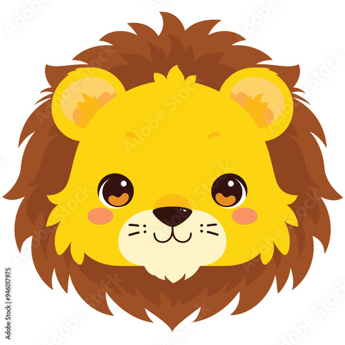 Obraz premium A cute cartoon lion head with simple flat illustration style for vector...
