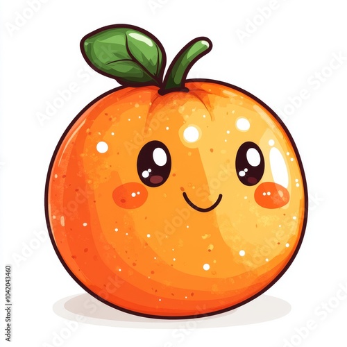 Fototapeta premium A cute cartoon orange character with a smiling face and green leaf atop, radiating joy and freshness.