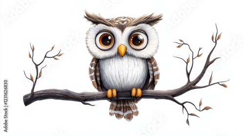 © ยลรดี ชะโนวรรณะ, Fototapeta premium A cute cartoon owl perched on a branch, showcasing big eyes and soft feathers, perfect for children's decor or educational materials.