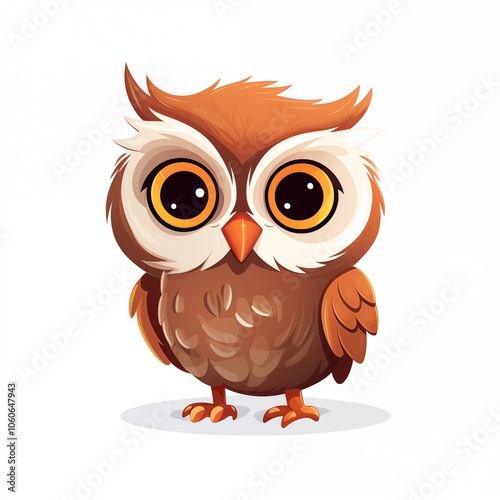 Fototapeta premium A cute cartoon owl standing on a white background looking curiously at its...