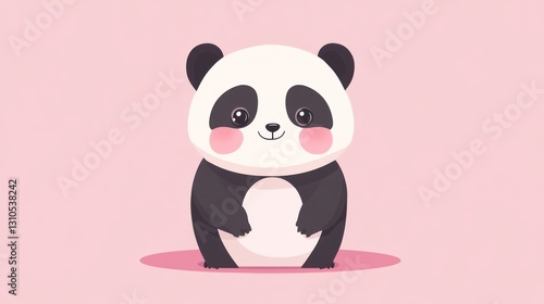 © 11faqihtanjung, Naklejka premium A Cute Cartoon Panda Bear Smiling Against Pink Background
