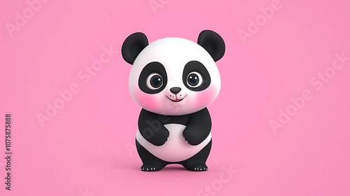 Naklejka premium A cute cartoon panda character with a friendly expression against a pink background.