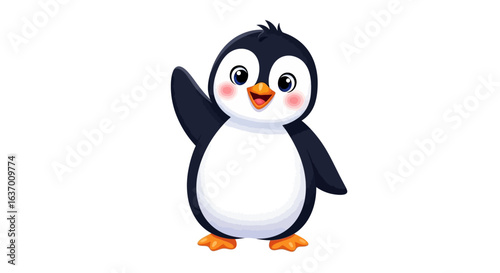 © زياد العشماوي, Fototapeta premium A Cute Cartoon Penguin Character Waving Its Wing Hello in a Friendly Manner Illustrating a Whimsical Arctic Animal for Children's Entertainment and Educational Content