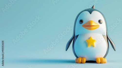 © Galib, Obraz premium A cute cartoon penguin on a light blue background.