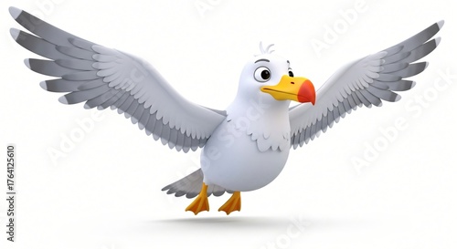 Obraz premium A cute cartoon seagull with outstretched wings and a friendly expression isolated on a white background