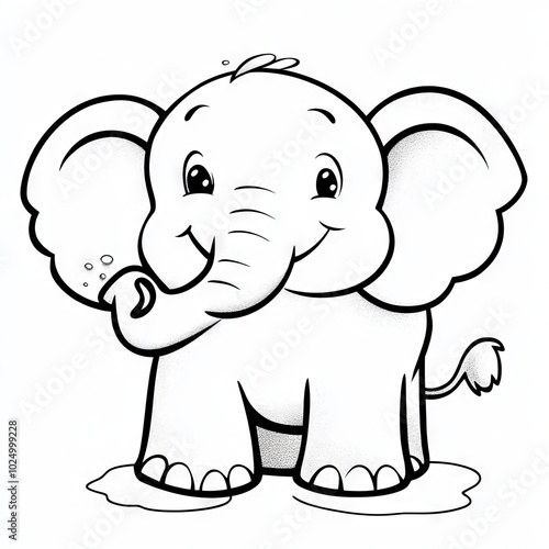 © MetaKibo, Obraz premium A cute, cartoon-style elephant standing in water, designed for coloring.