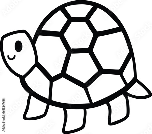Obraz premium A cute cartoon turtle playing soccer with a red and white ball