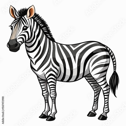 © MDSajid, Obraz premium A cute cartoon zebra standing on a white background with black and white stripes