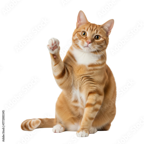 © Bright Stock, Obraz premium A cute cat high five isolated on white background