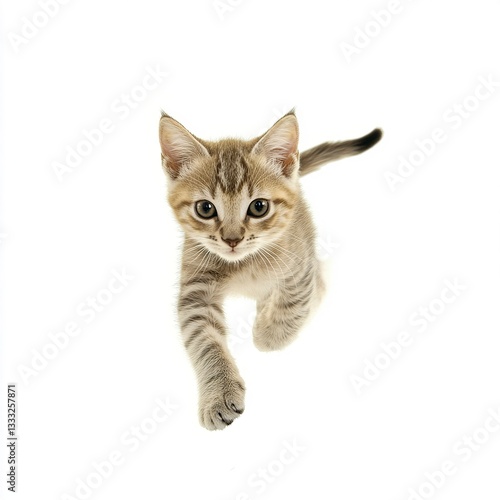 © Thanthara, Fototapeta premium A Cute cat running, on a white background