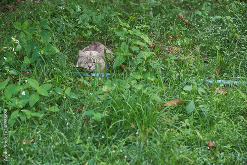 Obraz premium A cute cat sleeping on the grass