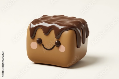 Obraz premium A cute, cube-shaped treat topped with melted chocolate, a delightful dessert.
